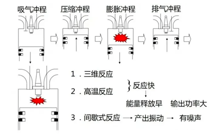 燃烧速度非常快,因此需要对点火时机和混合气的浓度进行精细的调节,以确保发动机运行的平稳和效率。可以简单的理解为烧氢气的发动机,其基本原理与普通的汽油或者柴油内燃机的原理一样,是基本的汽缸—活塞式的内燃机,同样是按照吸气——压缩——做功——排气4个冲程来完成化学能对机械能的转化,只是氢内燃机里的燃料是氢气。