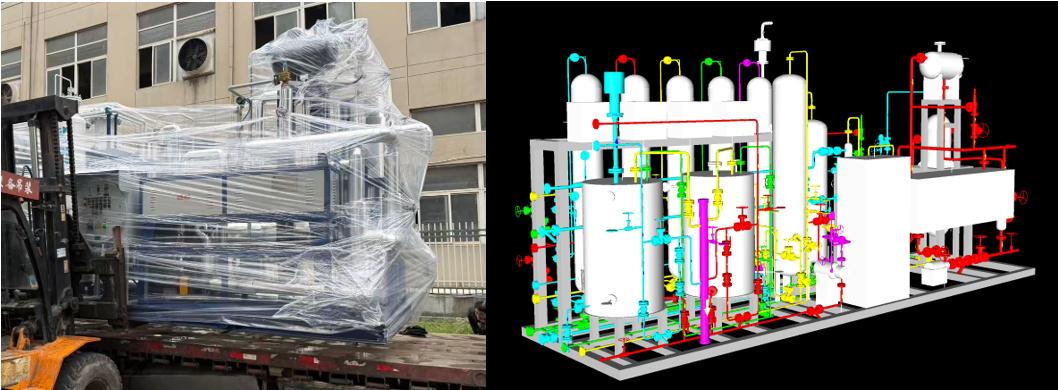 该制氢设备是我公司苏州科瑞工程科技有限公司为山东寿光鲁清石化有限公司提供的一套撬装的小型甲醇制氢设备,采用科瑞公司最新甲醇制氢工艺,在传统甲醇制氢技术基础上完成优化升级设计,不仅满足了石化和化工的高标准,同时大幅缩小了设备的占地面积及高度。